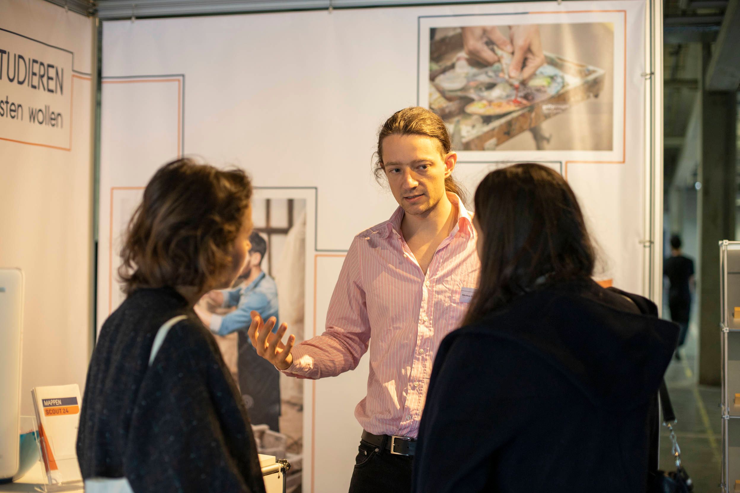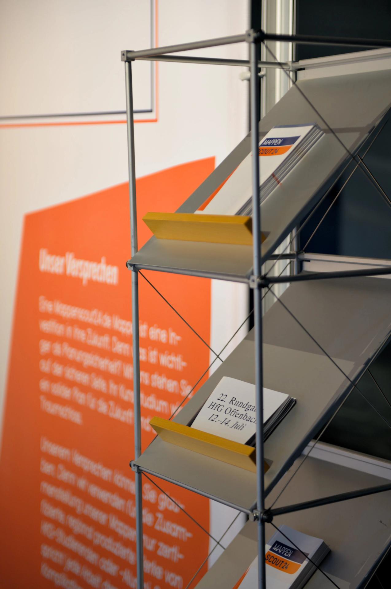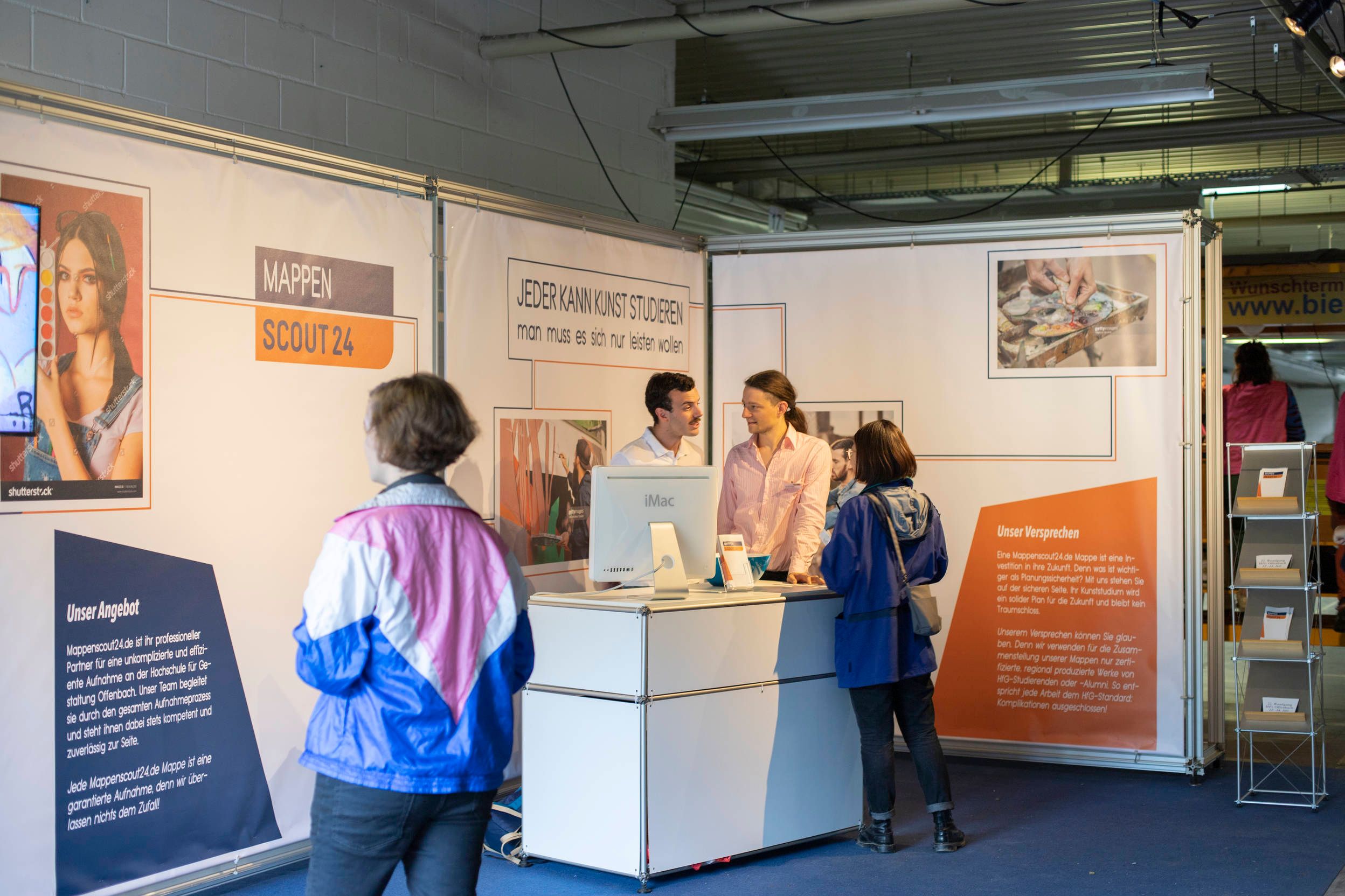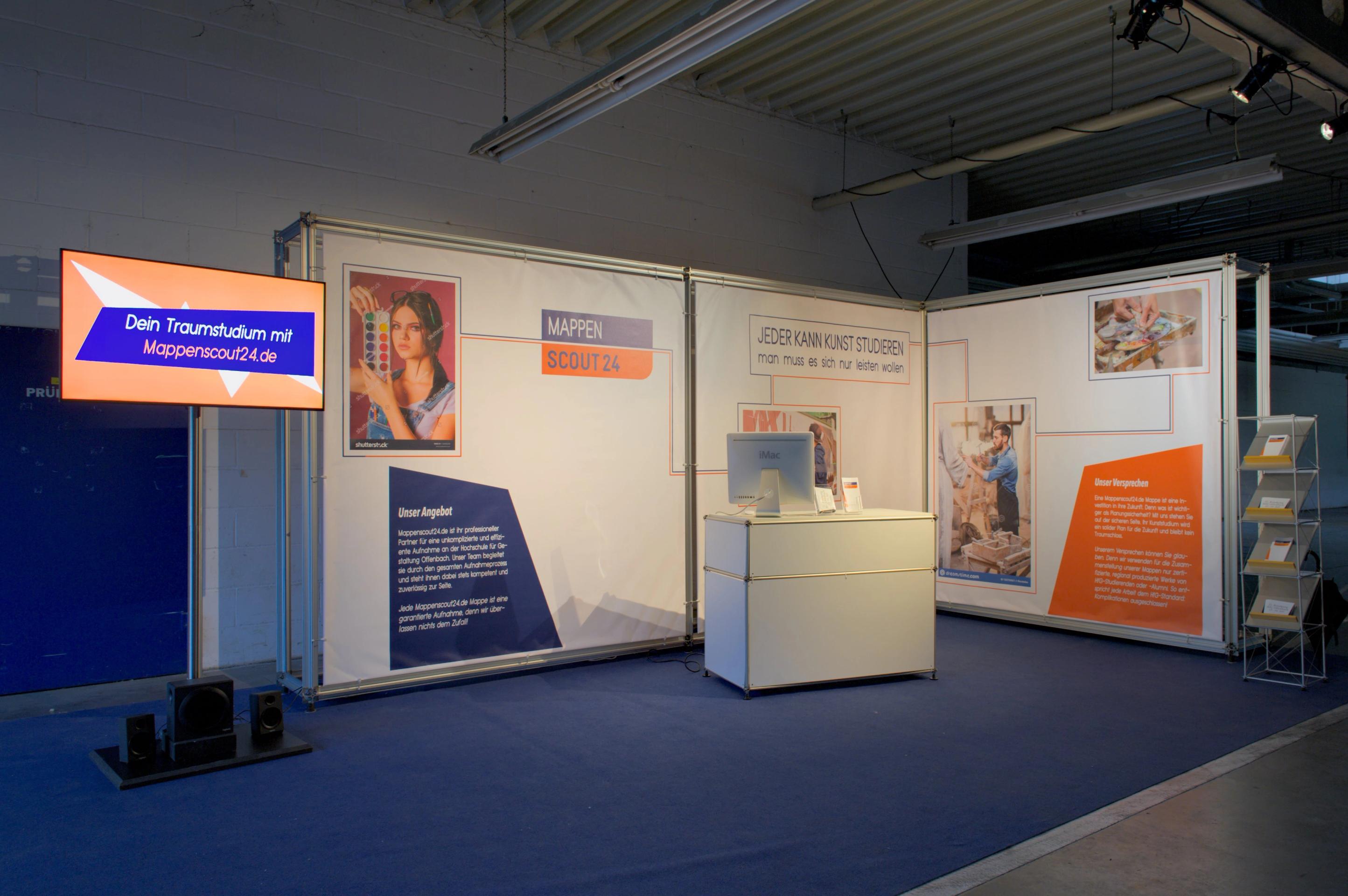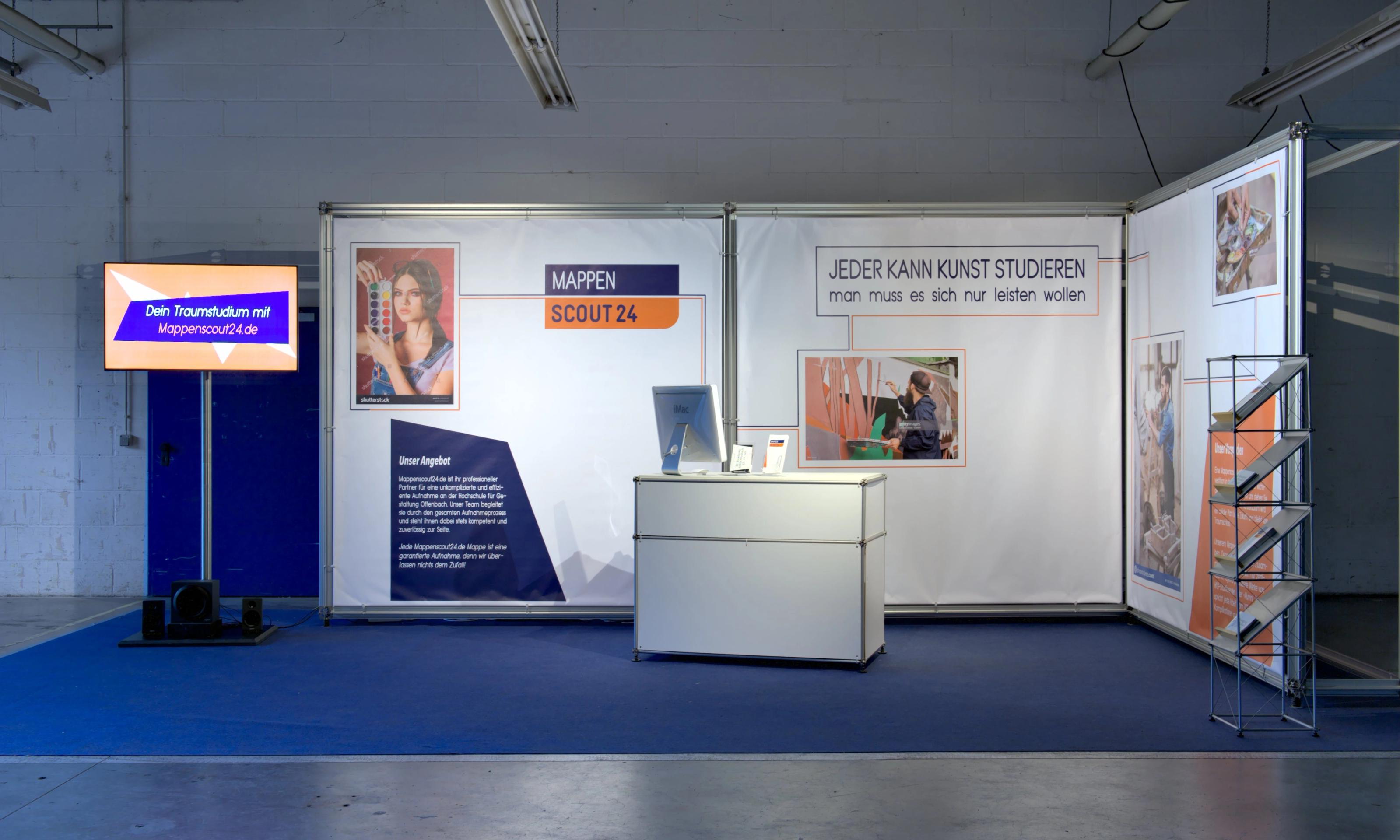 Mappenscout24.de war eine Installation und Performance während des HfG-Rundgangs 2019. Mit einem durchdesignten Messestand stellt sich hier ein Start-Up als disruptives Business vor.