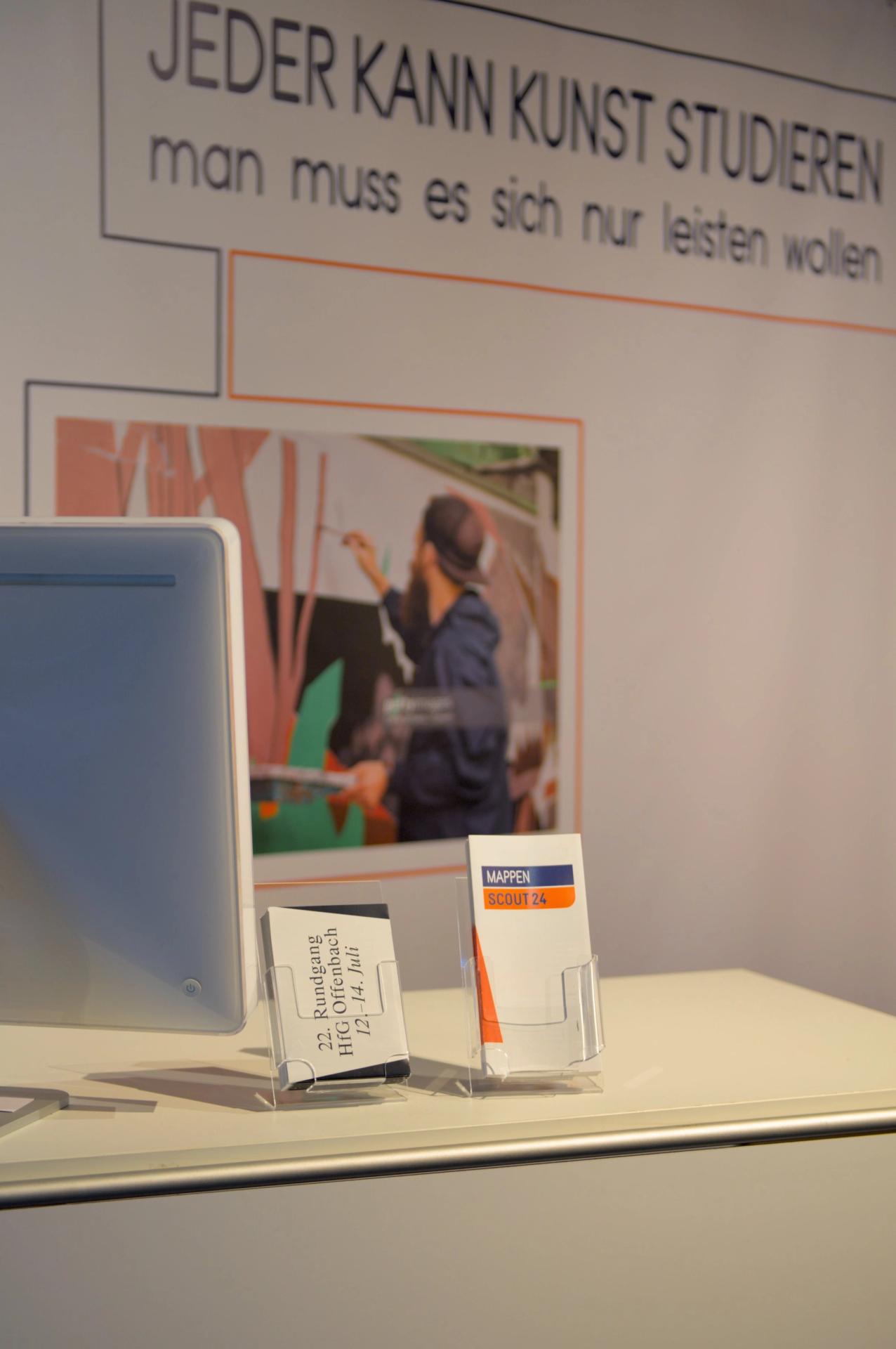 Das Kunststudium wird als ultimativer Selbstfindungstrip vermarktet, dessen klassische Zugangsbeschränkung, die Mappenprüfung, mithilfe von Mappenscout24.de übersprungen werden kann. Aus aussortierten Arbeiten von Studierenden stellt das Unternehmen neue Bewerbungsmappen mit Aufnahmegarantie zusammen.